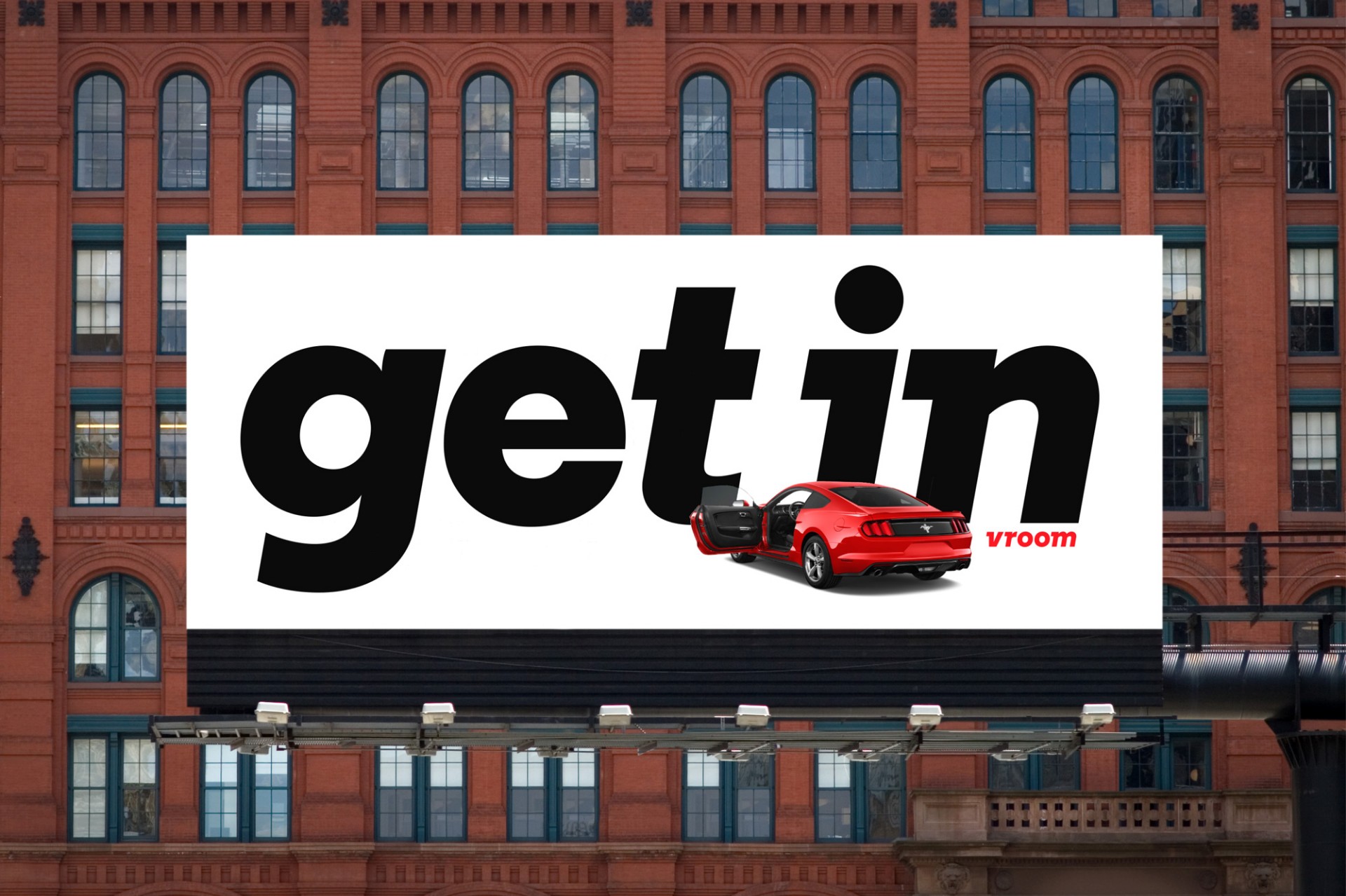 VROOM品牌形象識別是圍繞自定義字體Vroom構建的,品牌字體選擇帶有斜體字形,喚起前進動感和駕駛汽車。字體基于幾何Regular Extrabold Italic。徽標強化了速度和自由的理念,是Vroom吸引力的關鍵。字標帶有一個簡單的字母組合,Vroom的小寫字母“v”在一個圓圈中。品牌采用明亮,運動的紅色,捕捉到品牌名稱的能量,并區別于其他科技公司通常使用的藍色。